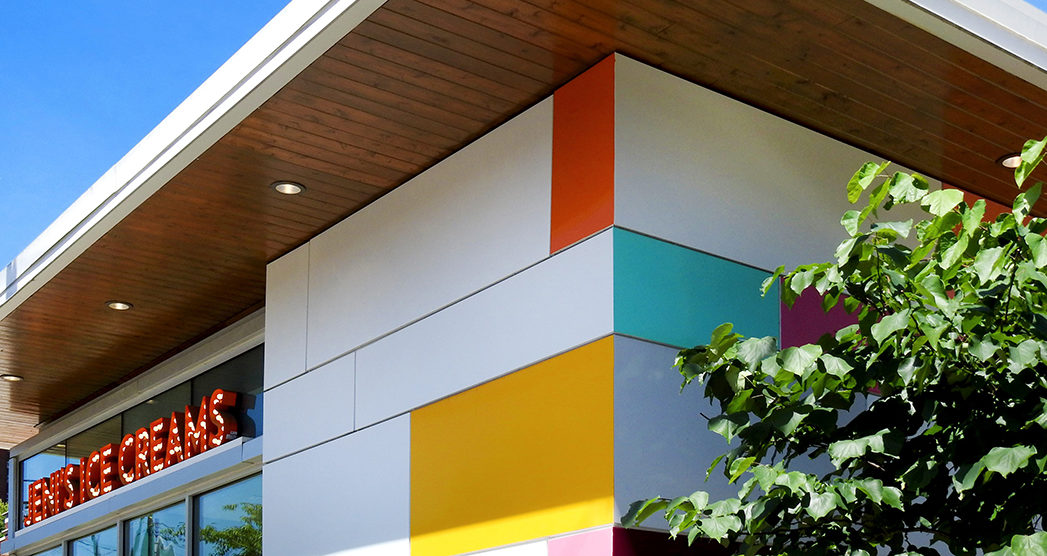 Jeni’s Splendid Ice Creams is a 1,000-square-foot artisan ice cream and frozen yogurt shop located on the stomping grounds of Charlotte’s historic South End development. This 35th location at The Design Center of the Carolinas complex marks the brand’s first North Carolina spot complete with stunning shared green space and outdoor patio seating. Colorful aluminum composite panels are incorporated on their storefront, creating a vibrant atmosphere.